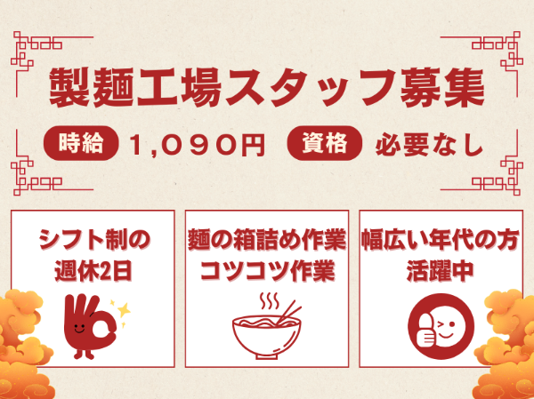 | 職種 | 生麺製造作業スタッフ |